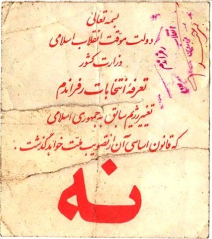 Ayatollah Khomeini lässt ein Referendum abhalten. Man kann entweder für oder gegen die Islamische Republik stimmen. Das Ergebnis: 89 % Wahlbeteiligung und 98 % stimmen für die Errichtung einer Islamischen Republik.