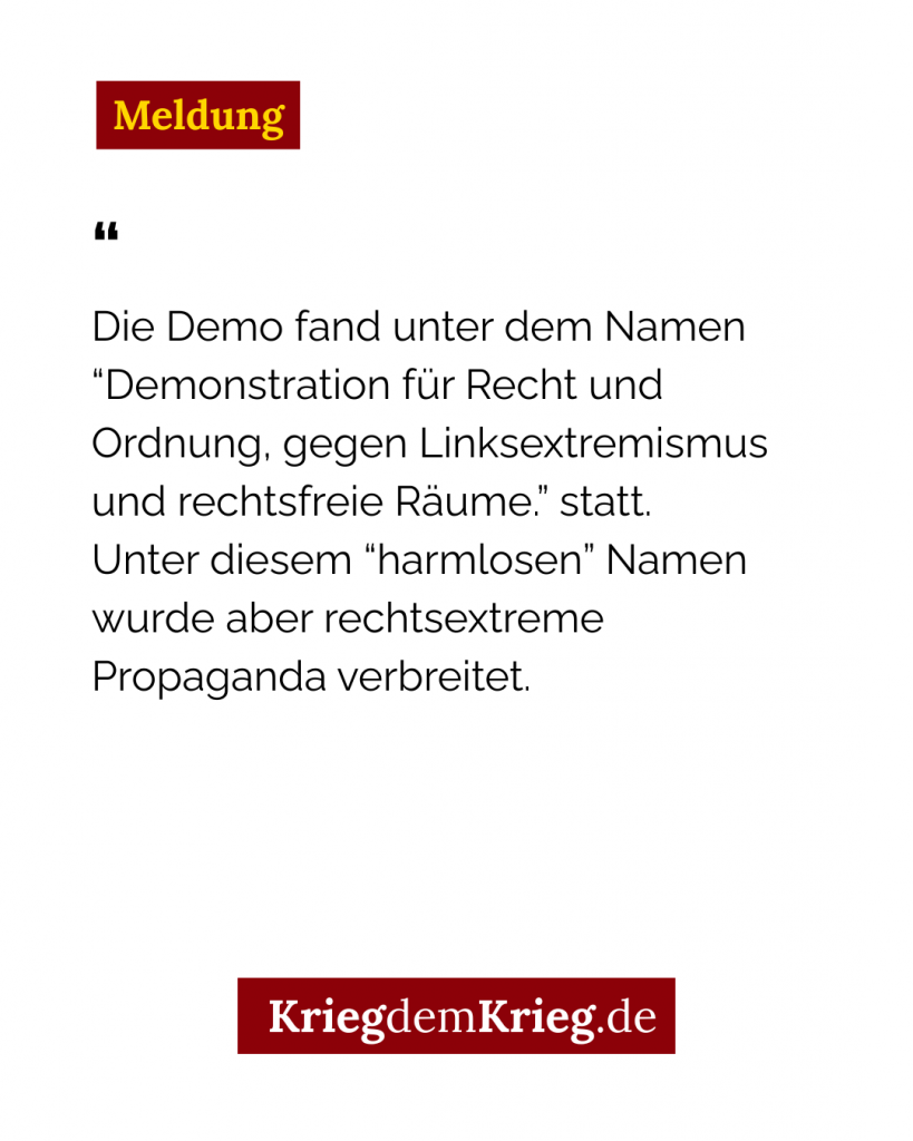 Die Demo fand unter dem Namen “Demonstration für Recht und Ordnung, gegen Linksextremismus und rechtsfreie Räume.” statt.